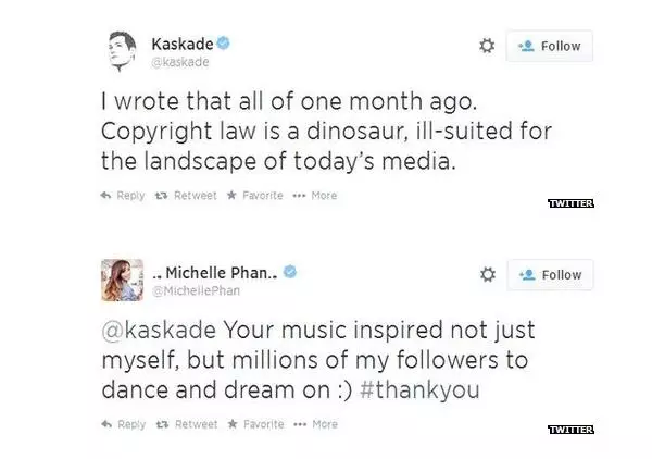 所涉及音樂的原創作人Kaskade對米歇兒表示口頭支持,因為起訴是他所屬音樂公司決定,與他個人無關,甚至他表示米歇爾的音樂品味很不錯。