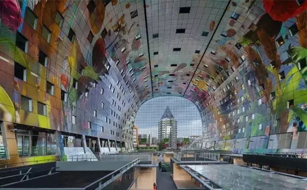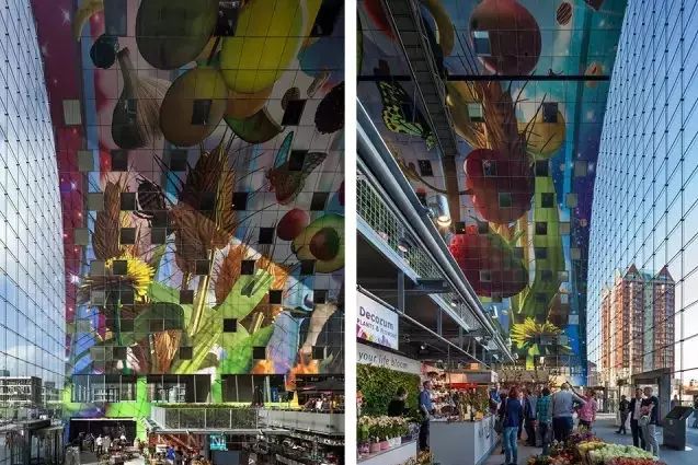 沒錯,這是一家在鬧市區的菜市場,雖然看上去不像,或許在普通人眼裡感覺是一個奇奇怪怪的建築,但它為何可以在丹麥第二大城市鹿特丹建成呢?