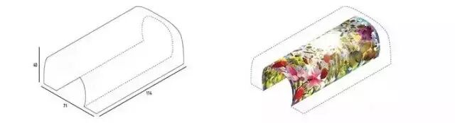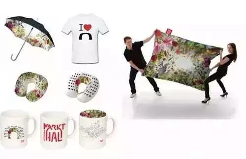 這幅畫也成為了繽紛菜市場的名片,應用在各種周邊產品里,有大靠墊、雨傘等。注意那U形的頸部靠枕就是建築的造型輪廓,好有喜感!