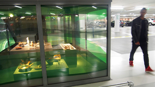地下三個樓層的大容量車庫,不但可以解決市中心的停車難,也為市場裡的食品運輸提供便捷。值得一提的是停車庫的電梯邊有展覽櫥窗,放置著這片區域的考古發現,訴說古代鹿特丹的飲食文化。