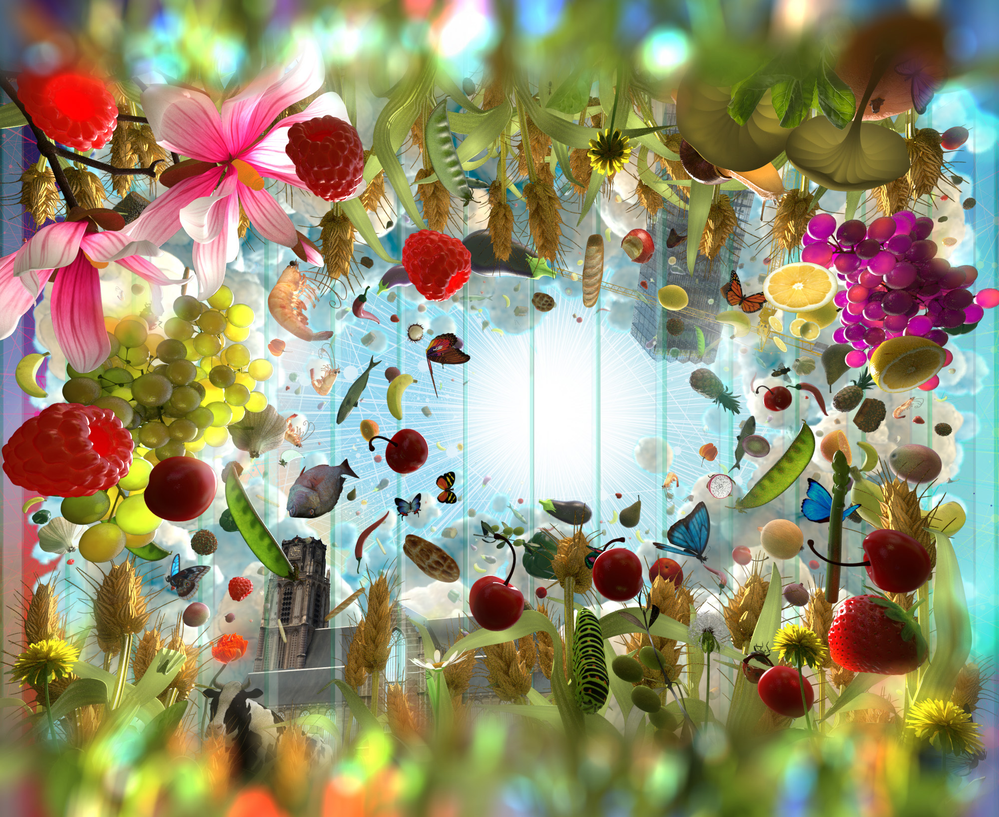 畫作“Horn of Plenty 豐足的號角”超過一萬平米大,是現今荷蘭最大的藝術品。看似真實影像般逼真的畫面,其實都由數碼渲染而成。圖案的印刷精度和時尚雜誌齊平,總像素高達400億,文件尺寸是驚人的1470GB!